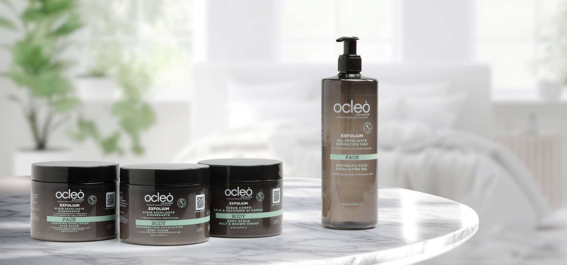 Exfolium è una linea professionale con esfolianti per viso e corpo, per rinnovare la pelle in profondità,